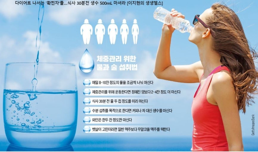 - 식욕 조절: 식사 전에 물을 마시면 포만감을 주어 과식을 예방하는 데 도움이 됩니다.