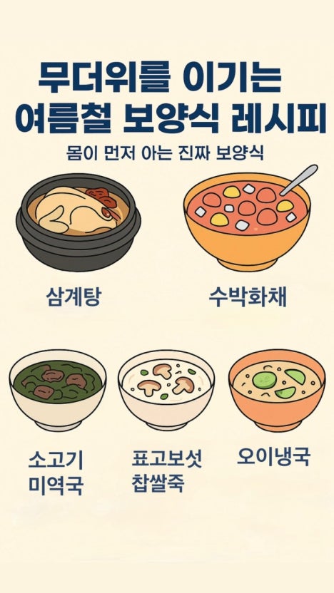 여름은 땀을 통해 몸속 노폐물을 배출하고 체력을 다질 수 있는 좋은 기회이기도 합니다. 하지만 무더위 속에서 **건강하게 땀을 빼고, 그에 맞는 영양가 높은 식단으로 몸을 채워주는 지혜**가 필요합니다.
