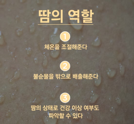 - 노폐물 배출: 땀과 함께 몸속의 일부 노폐물(요소, 젖산, 암모니아 등)이 배출됩니다.