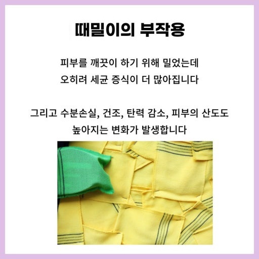 - **피부 보호막 파괴:** 때수건으로 피부를 강하게 문지르면 각질층뿐만 아니라 피부의 가장 바깥 보호막인 **표피층까지 손상**될 수 있습니다.