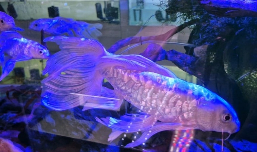 - 백금빛 발색과 나비처럼 우아한 지느러미는 그 어떤 관상어보다도 압도적인 시각적 즐거움을 선사합니다. 특히 연못에서 유유히 헤엄치는 모습은 한 폭의 그림과 같습니다.