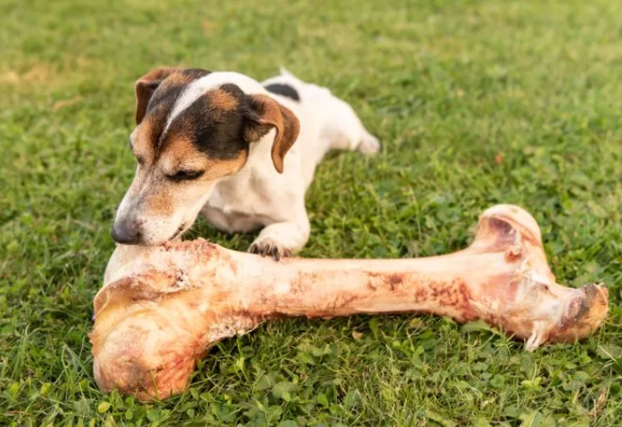 고기의 뼈는 강아지의 소화기관을 상처 나게 할 수 있으며, 조각이 되어 목, 식도, 위 등으로 이동하며 중대한 문제를 초래할 수 있습니다. 하지만 나쁜 용도로만 생각하면 안 된다. 뼈를 주게 되면 좋은 점이 뼈를 이빨로 갉아먹으면서 치아를 양치질과 치실의 효과가 있으며, 잇몸의 마사지하는 효과가 있다고 한다. 이에 따라 치석이 제거가 되고 각종 일못 질환을 예방할 수 있다. 고기의 뼈를 주고 나면 자리를 바로 떠나서는 안된다. 뼈를 급하게 먹지 않는지, 큰 뼈를 통째로 삼키지는 않는지, 먹다가 목에 걸리는지는 않는지 등의 문제가 생길 수 있으니 주고 나서는 시야에서 살펴봐야 한다.