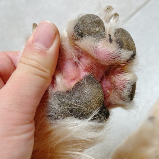 - 알레르기 및 아토피: 음식 알레르기(특정 단백질)나 환경 알레르기(꽃가루, 진드기)가 있는 경우, 발바닥을 포함한 피부에 가려움증이 나타나 발을 핥게 되면서 습진으로 이어집니다.