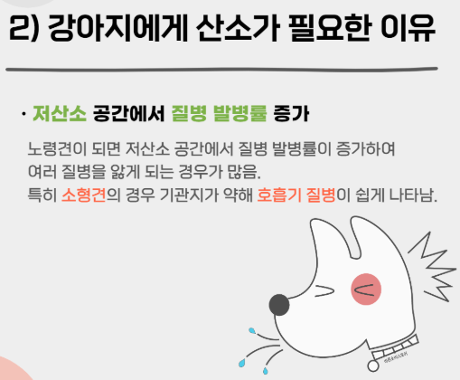 강아지 산소방은 호흡기 질환이나 심장병을 앓고 있는 반려견에게 매우 유용합니다. 이러한 질환을 가진 강아지는 산소가 부족해질 수 있으며, 이때 산소방을 통해 충분한 산소를 공급받을 수 있습니다. 특히 노령견이나 기저질환이 있는 강아지에게는 더욱 필요합니다. 산소방을 사용하면 강아지가 편안하게 호흡할 수 있도록 도와주며, 회복 속도를 높일 수 있습니다.