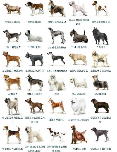 강아지는 크게 소형견, 중형견, 대형견으로 나눌 수 있습니다. 각 종류마다 특징이 다르기 때문에, 자신의 생활 스티일과 맞는 강아지를 선택하는 것이 중요합니다. 아래에 사진에 보이는 강아지는 애완견으로 기르고 있는 종류를 사진으로 나열해 놓은 것입니다. 우리나라에서 기르는 애완견 종류만 150종이나 된다고 하네요.