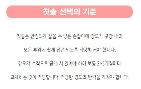 - 단점: 칫솔에 대한 적응 훈련이 필요합니다.