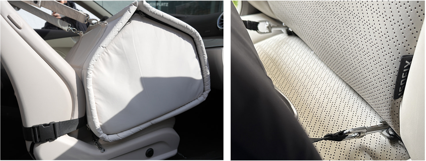 이 카시트는 간결한 디가인과 다양한 기증을 갖추고 있어 많은 반려인들에게 사랑받고 있습니다. 안전벨트와 쿠션이 함께 제공되어 강아지를 안전하게 고정할 수 있습니다.