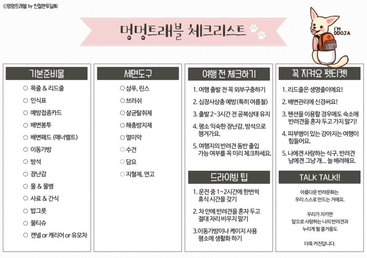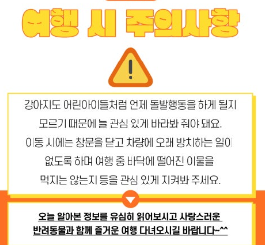 - 규칙 준수: 각 여행지나 숙소의 펫 정책 및 규칙을 반드시 사전에 확인하고 준수해야 합니다.