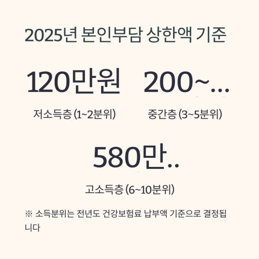 본인부담상한액은 가구의 소득분위(10분위)에 따라 다르게 적용됩니다. 소득이 낮을수록 상한액이 낮아져 더 많은 혜택을 받습니다.