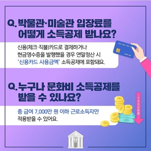 - **총 급여액 7천만원 초과 시에는 문화비 소득공제 혜택을 받을 수 없습니다.**