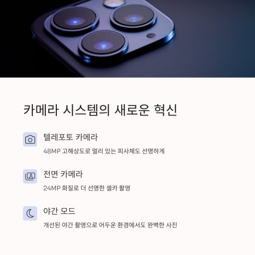 - 메인 광각 카메라의 센서 크기가 더욱 커져 저조도 환경에서의 촬영 성능이 획기적으로 개선될 수 있습니다.
