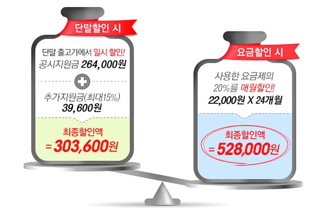 - 가입하는 요금제에 따라 지원금액이 달라집니다. (고가 요금제일수록 지원금이 커집니다.)