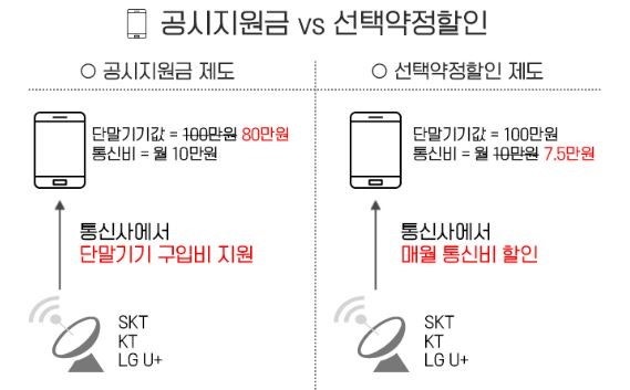 | 구분 | 공시지원금 | 선택약정 할인 |