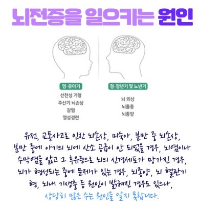 - **뇌염/뇌수막염:** 뇌 염증으로 인해 뇌 기능에 이상이 생겨 발작이 나타나기도 합니다.