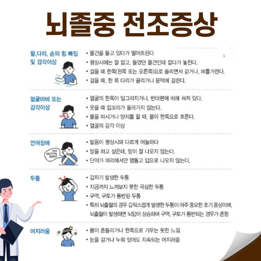 - 뇌졸중이 발생하기 전, 기억력이 급격히 떨어지거나 최근의 일을 기억하지 못하는 등 인지 기능에 문제가 생길 수 있습니다.