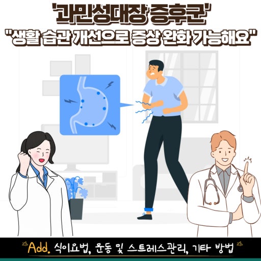 만성적인 복통과 배변 문제로 직장 생활에 어려움을 겪고 있다면, 이는 단순한 배탈이 아닌 **과민성대장증후군**일 수 있습니다. 하지만 이 질환은 불치병이 아니며, 올바른 식단 관리, 스트레스 해소, 필요시 약물 치료, 그리고 꾸준한 생활 습관 개선을 통해 충분히 증상을 조절하고 건강한 일상을 되찾을 수 있습니다.