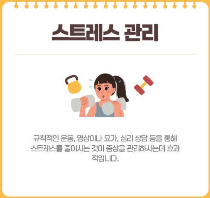 - 긍정적인 마인드셋: 증상에 너무 집착하기보다, 내가 할 수 있는 관리에 집중하고 긍정적인 마음을 가지려 노력하세요.