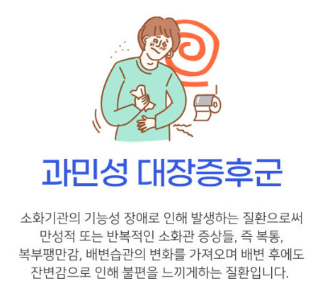 - 기능성 위장 질환: 대장 내시경, 조직 검사 등으로는 특별한 염증이나 구조적 이상이 발견되지 않습니다. 그럼에도 불구하고 만성적인 복통, 복부 팽만감, 설사, 변비 등 배변 관련 증상이 반복적으로 나타나는 질환입니다.