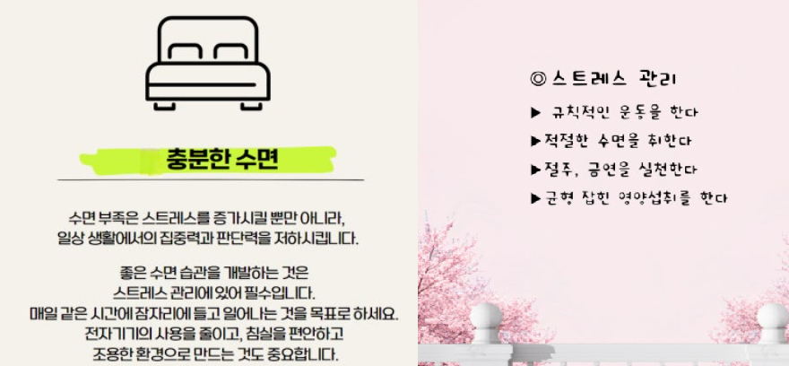 - 충분한 수면: 하루 7~8시간의 충분하고 질 좋은 수면은 혈압을 안정화하고 신체 회복에 도움을 줍니다.