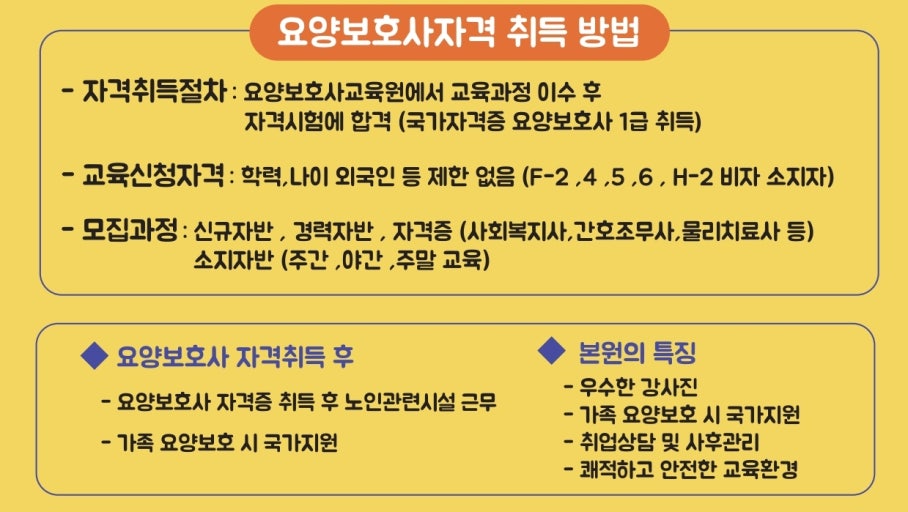 - 인기 요인: 고령화 사회의 핵심 직무, 관련 서비스 수요 폭증, 비교적 단기간에 취득 가능.