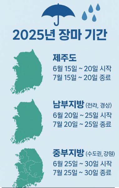 1.1. 2025년 장마 시작 및 종료 시기 (예상)